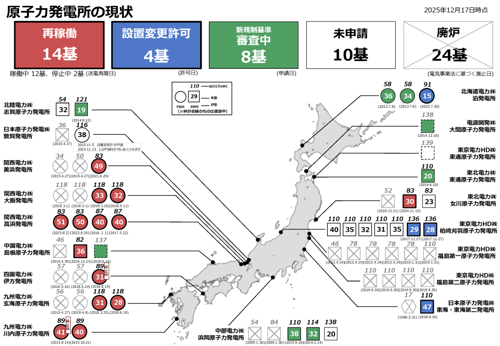 日本の原子力発電施設の状況